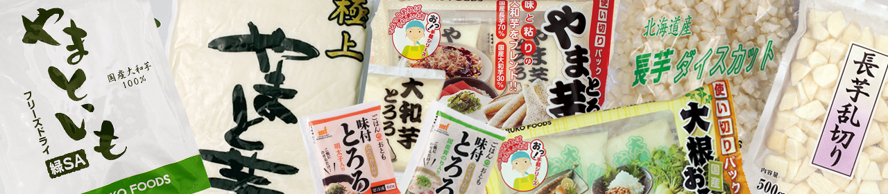 Since its establishment, Marukou Foods has been dedicated to producing tororo exclusively, consistently adhering to domestically sourced ingredients. "Frozen Tororo" is one such product, made from resilient Yamato yams meticulously managed from raw materials to finished goods. The convenience of being close to the production area, coupled with the productivity and manufacturing techniques inherited from previous generations' seed potato cultivation, enables stable product supply. Yam has long been cherished as a natural food, believed to have nourishing and revitalizing effects. From frozen and refrigerated processed goods to powdered products and frozen vegetables, we offer a wide range of items catering to both commercial and household needs.