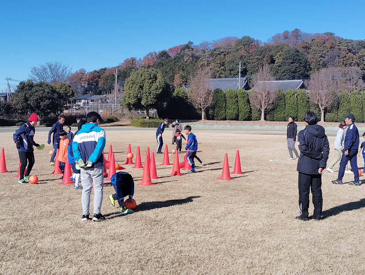 2024年12月15日(日)、大宮アルディージャ普及部コーチのご指導のもと、「マルコーフーズpresents サッカー教室」が仙元山公園陸上競技場(埼玉県深谷市)で開催されました。>大宮アルディージャHP