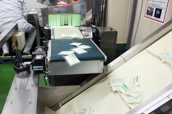 各工程の抜き取り検査、生産機器の殺菌確認を定期的に行っています。また最新機材による異物混入防止に取り組んでいます。