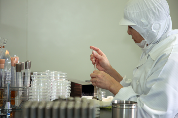生産ロットごとに微生物・官能検査を行っています。検査員の技能・精度向上のため外部期間での研修を定期的に行っています。